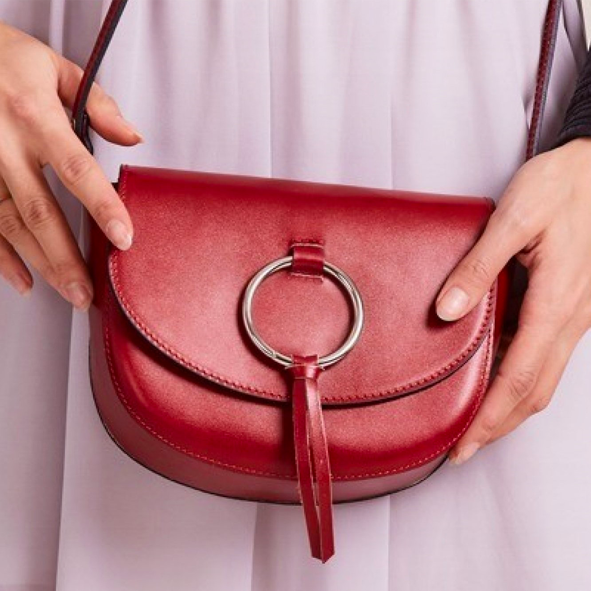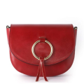 Mała Włoska Skórzana Torebka - Listonoszka Czerwona / Bordo (id 561)