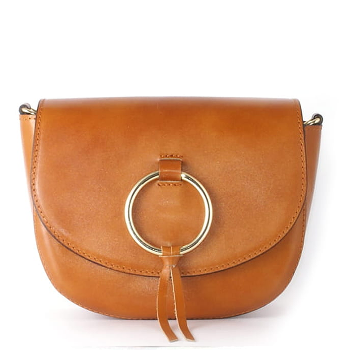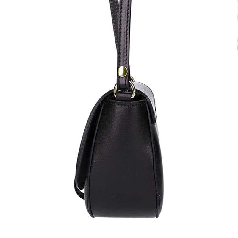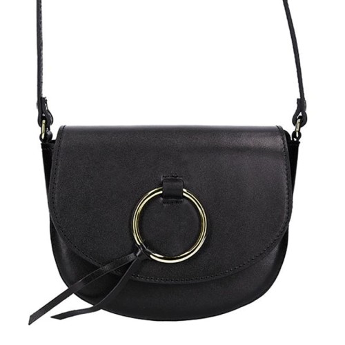 Śliczna damska torebka skórzana wykonana przez włoskich kaletników z najwyższej jakości skóry naturalnej. Wyróżniająca się półokrągłym kształtem i klapką ze złotym kółeczkiem...Taka mała torebka na długim pasku powinna się znaleźć w garderobie każdej kobiety która lubi mieć wszystkie niezbędne drobiazgi przy sobie, a nie jest zwolenniczką torebek XL. Torebka która idealnie dopełni zarówno elegancką jak również bardziej sportową stylizację...