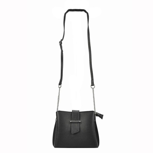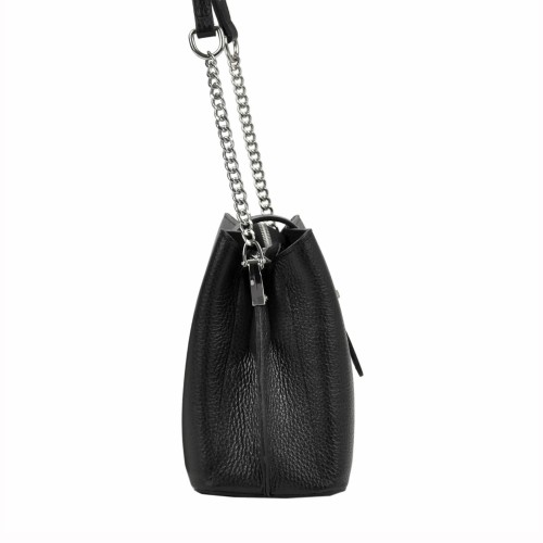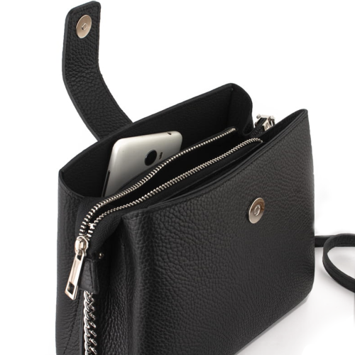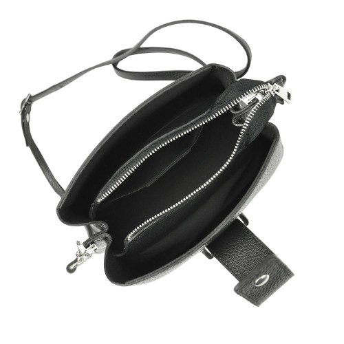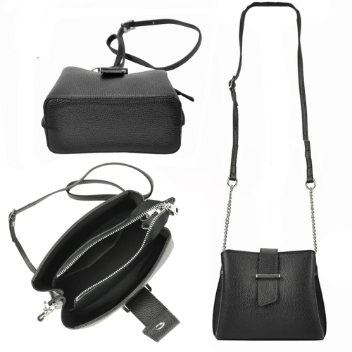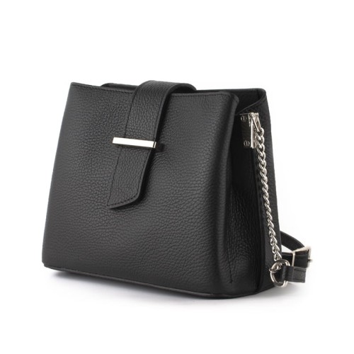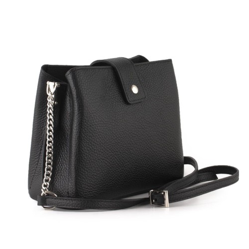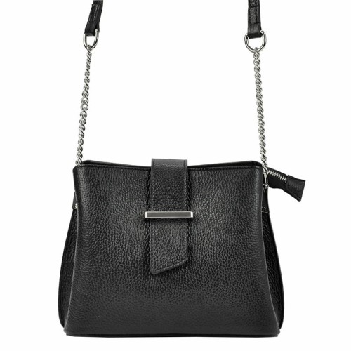 Mała torebka damska - kuferek wykonana z najwyższej jakości skóry naturalnej. Wyjątkowy charakter tej torebki podkreślają stylowe dodatki w postaci srebrnych okuć oraz paska połączonego z łańcuszkiem. Mała, ale zaskakująco pojemna - trzykomorowa torebka to niebanalny dodatek każdej kobiety ceniącej sobie praktyczność i elegancję.
