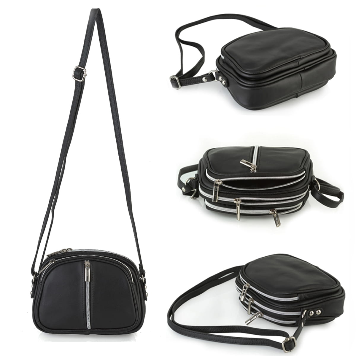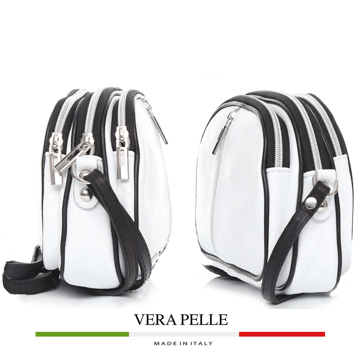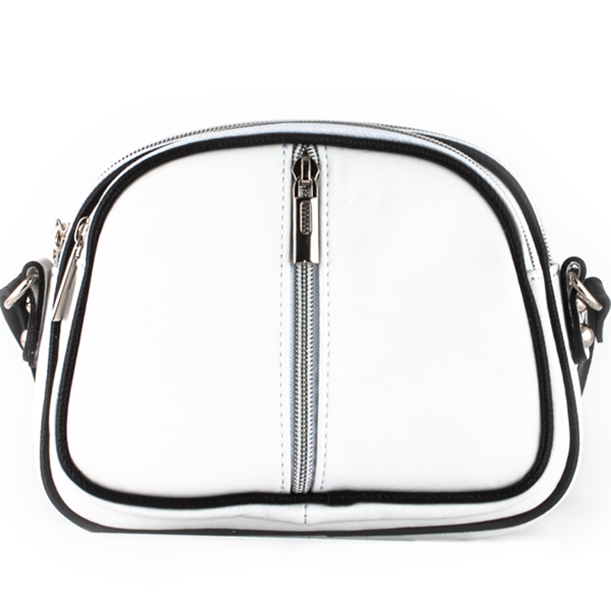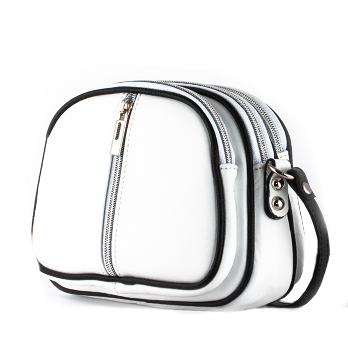 Biała skórzana torebka listonoszka trzy komory (id 1419)