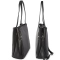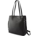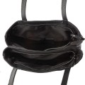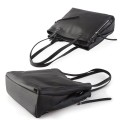 Czarna dwukomorowa duża torebka shopper bag ze skóry (id 1381)