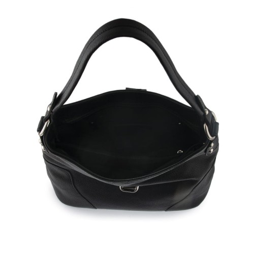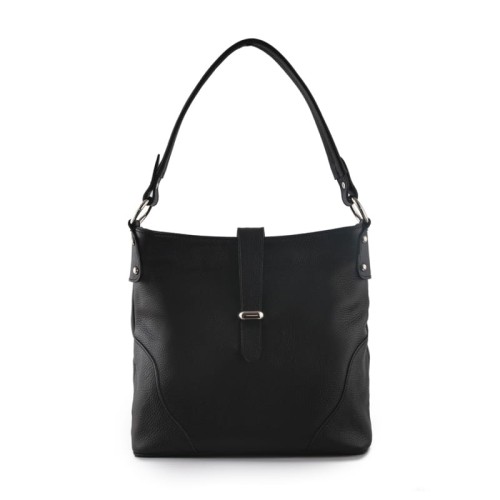 Czarna torebka typu worek, wykonana z najwyższej jakości skóry naturalnej przez włoskich kaletników. Klasyczny oraz prosty fason torebki pasuje niemal do każdej codziennej stylizacji. Fason worka dla kobiety w każdym wieku idealna do pracy, szkoły czy na zakupy, starannie wykonana będzie służyła kilka sezonów..