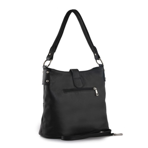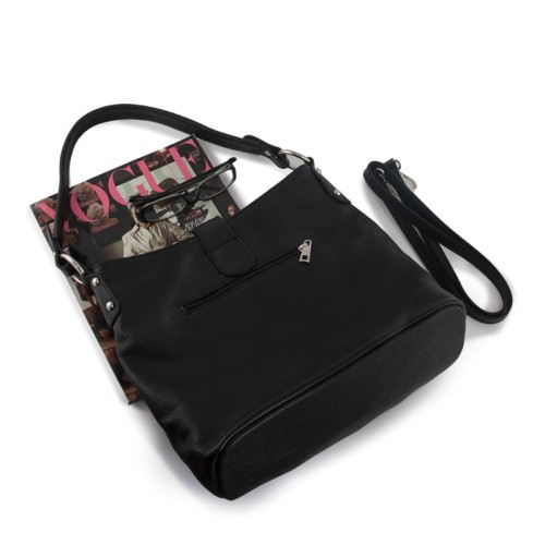 Czarna klasyczna skórzana torebka worek (id 1021)