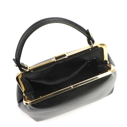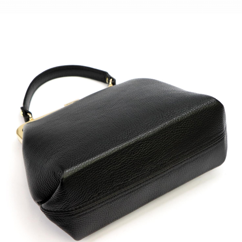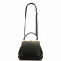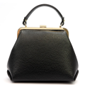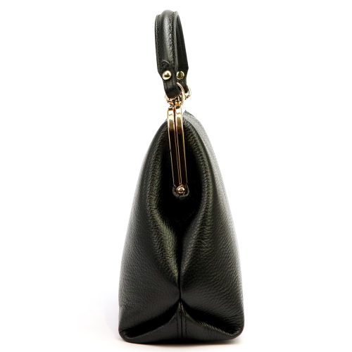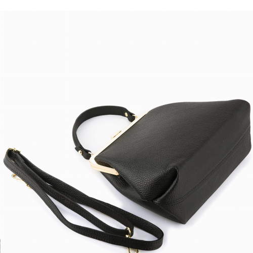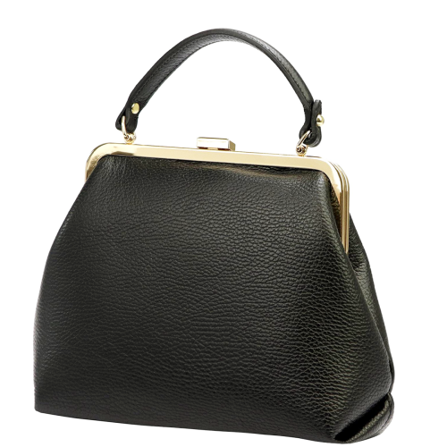 Czarna skórzana torebka damska kuferek ze złotym zapięciem (id 1404)