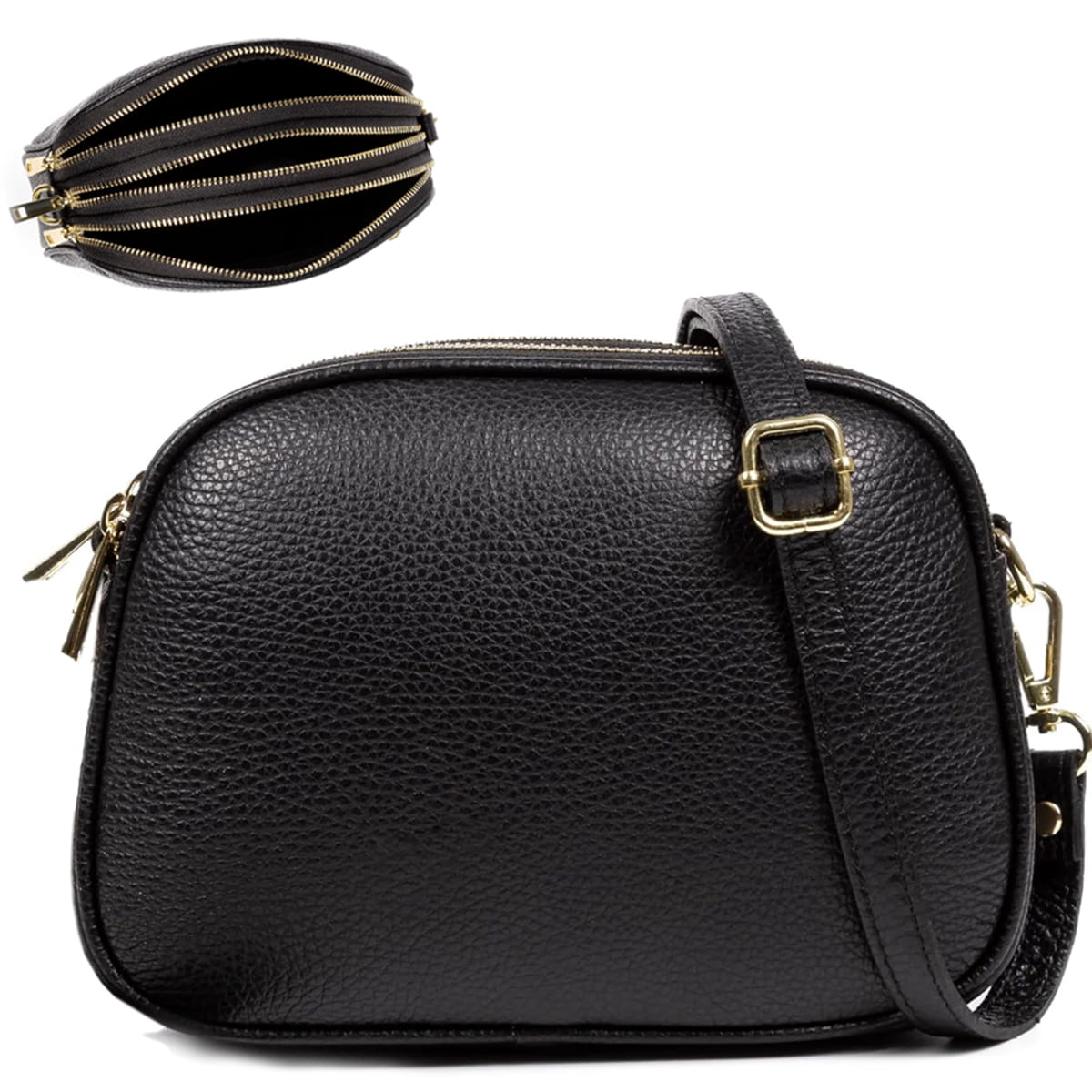 Wygodna, praktyczna damska torebka listonoszka wykonana z wysokiej jakości eko skóry. Torebka posiada aż trzy osobne komory każda zapinana na zamek dzięki czemu zawsze zachowasz w niej porządek. W środku zmieścisz wszystkie potrzebne rzeczy portfel, telefon i różne drobiazgi. Możliwość regulowanego paska sprawia że możesz ją nosić według Swoich upodobań na ramię lub przez ramię. Uniwersalny krój torebki z trzema zamkami będzie świetnie wyglądał na co dzień a także na specjalne okazje...