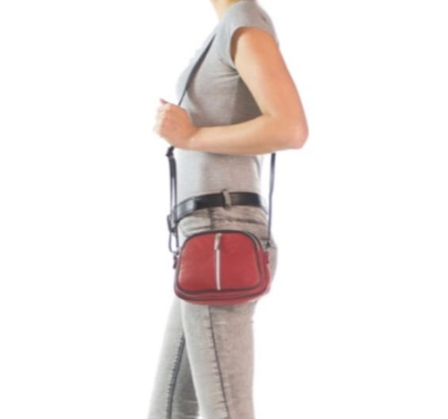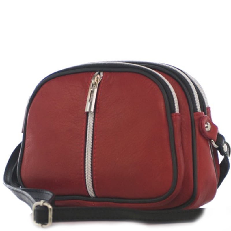 Czerwona Torebka skórzana Listonoszka (id 514) Trzy komory