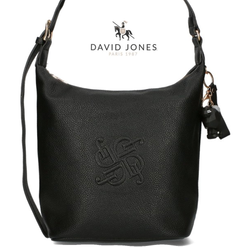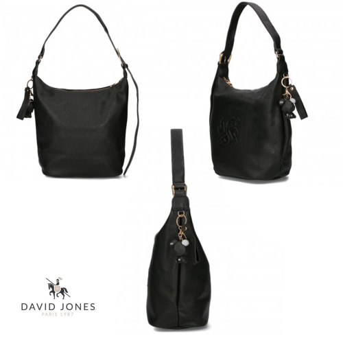 David Jones czarna torebka worek A5 z brelokiem (id 1429)