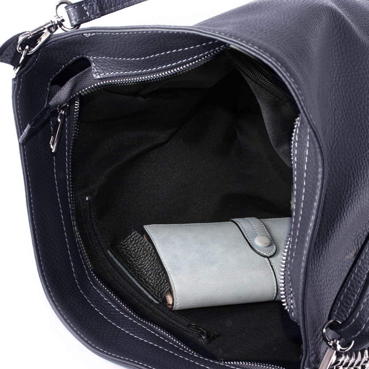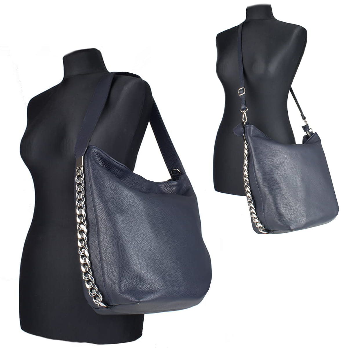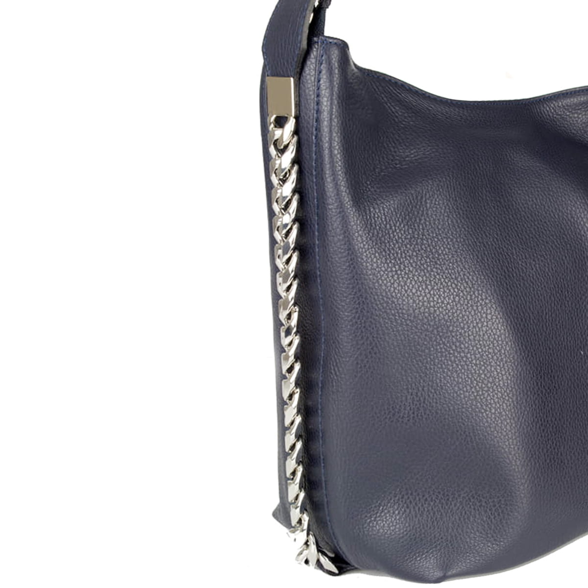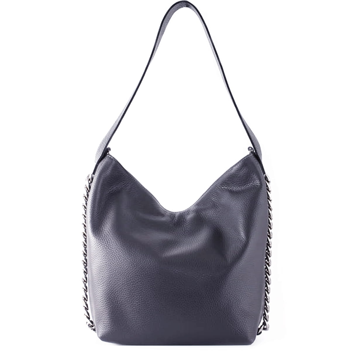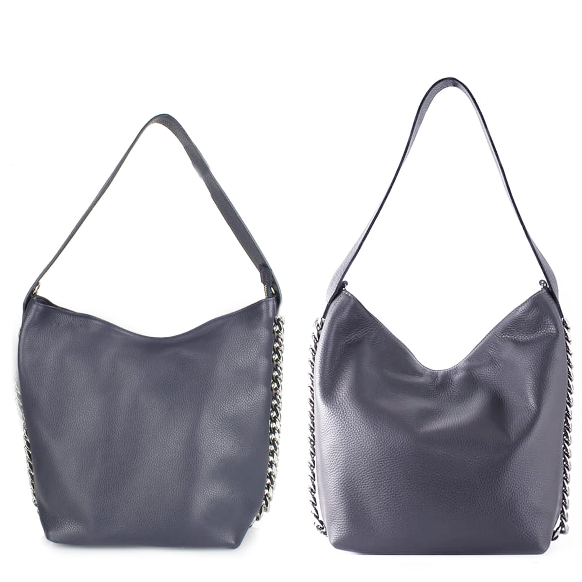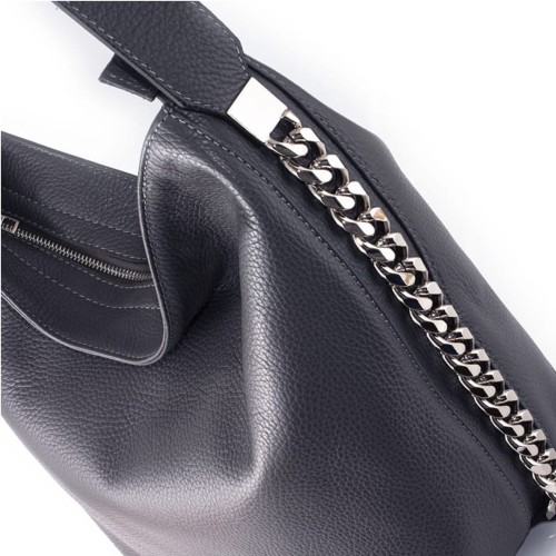Oryginalny skórzany worek wykonany z wysokogatunkowej skóry naturalnej. Ozdobiony po bokach grubym biżuteryjnym łańcuchem . Starannie wykonany przez włoskich kaletników posłuży Ci wiele sezonów...