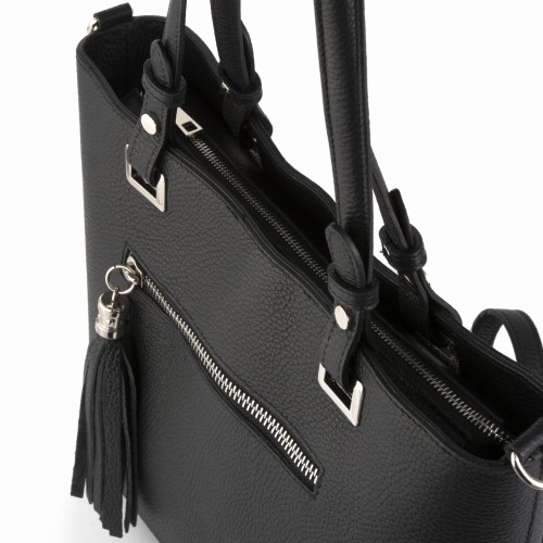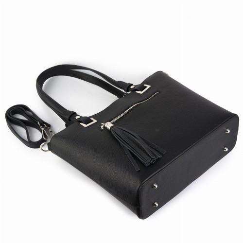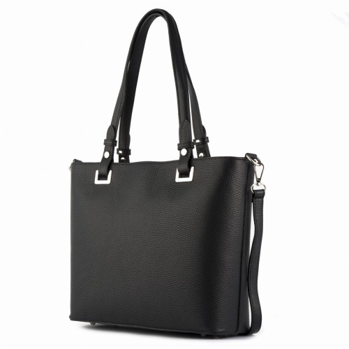 Klasyczna skórzana torebka shopper bag A4 czarna (id 1228)