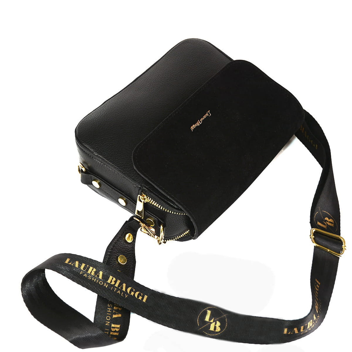 Laura Biaggi dwukomorowa listonoszka z zamszową klapką (id 1331)