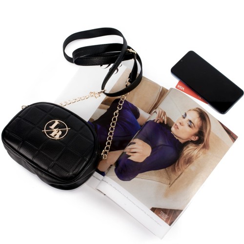 Mała czarna pikowana torebka Laura Biaggi eko skóra (id 1167)