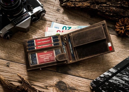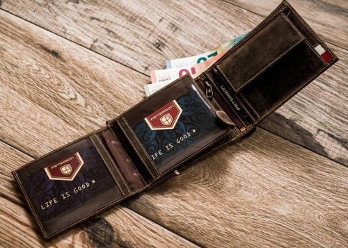 Orientacja: pozioma, z przodu portfela motyw patriotyczny, portfel wyposażony w techonologię RFID BLOCKING SYSTEM, która zabezpiecza karty zbliżeniowe przed nieautoryzowanym odczytem.
