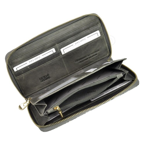 Portfel wyposażony w technologię RFID BLOCKING SYSTEM (Radio-Frequency IDentification), która zabezpiecza karty zbliżeniowe, dokumenty biometryczne, legitymacje i karty komunikacji miejskiej przed nieautoryzowanym odczytem danych. Technologia uniemożliwia odczyt danych za pomocą specjalnych czytników wykorzystywanych do kradzieży danych.