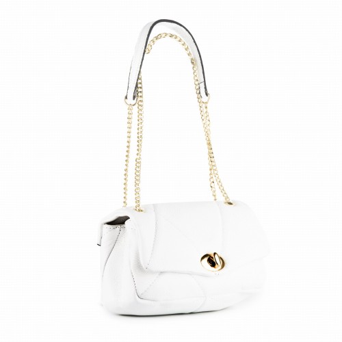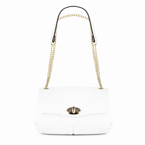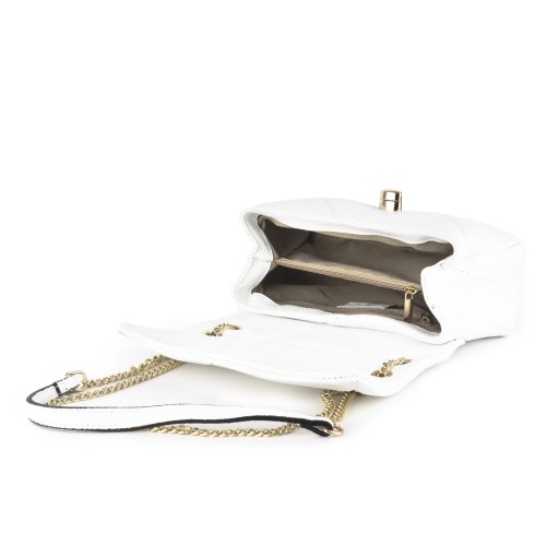 Skórzana pikowana torebka damska z łańcuszkiem biała (id 1314)