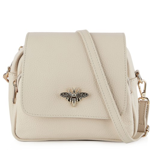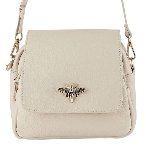 Skórzana torebka listonoszka z pszczołą beżowa (id 1162)