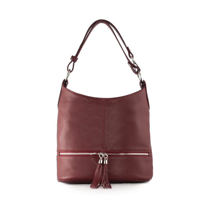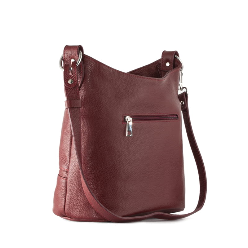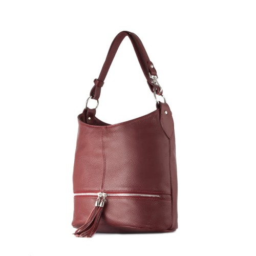 Skórzana torebka worek na regulowanym uchu bordowa (id 1044)