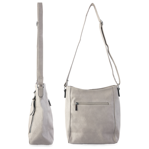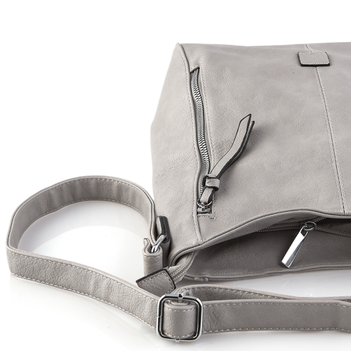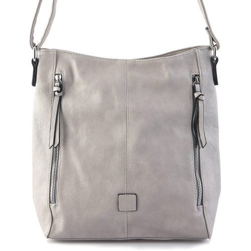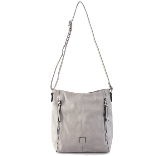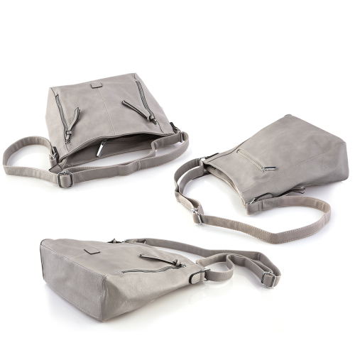 Szara pojemna torebka listonoszka z zamkami eko skóra (id 1376)