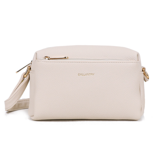 Szukasz torebki, która jest kompaktowa, ale pomieści wszystko, co niezbędne? Ta listonoszka marki Gallantry Paris w odcieniu ciemnego beżu to mistrzyni organizacji i stylu. Jej design opiera się na funkcjonalności zamkniętej w modnej formie typu "camera bag".