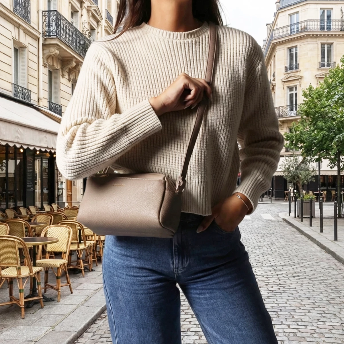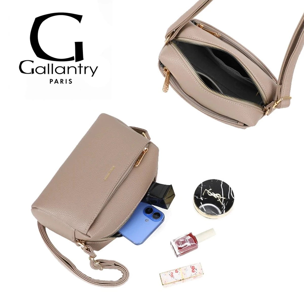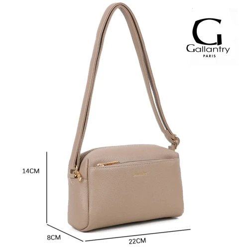 Szukasz torebki, która jest kompaktowa, ale pomieści wszystko, co niezbędne? Ta listonoszka marki Gallantry Paris w odcieniu ciemnego beżu to mistrzyni organizacji i stylu. Jej design opiera się na funkcjonalności zamkniętej w modnej formie typu "camera bag".