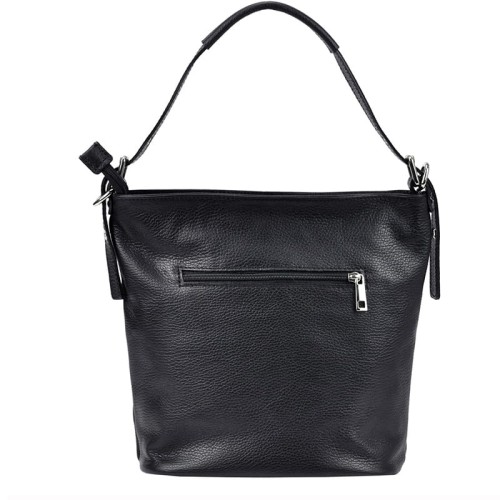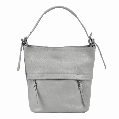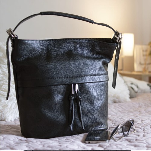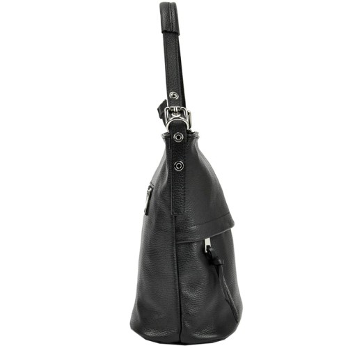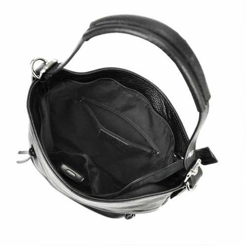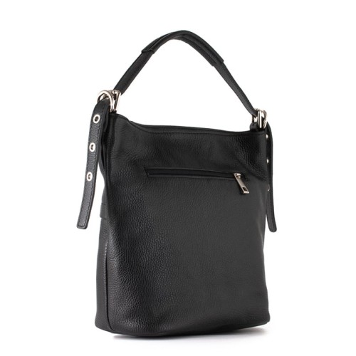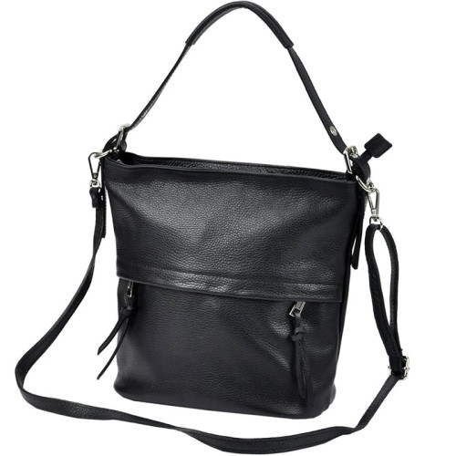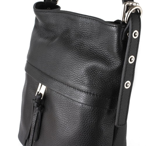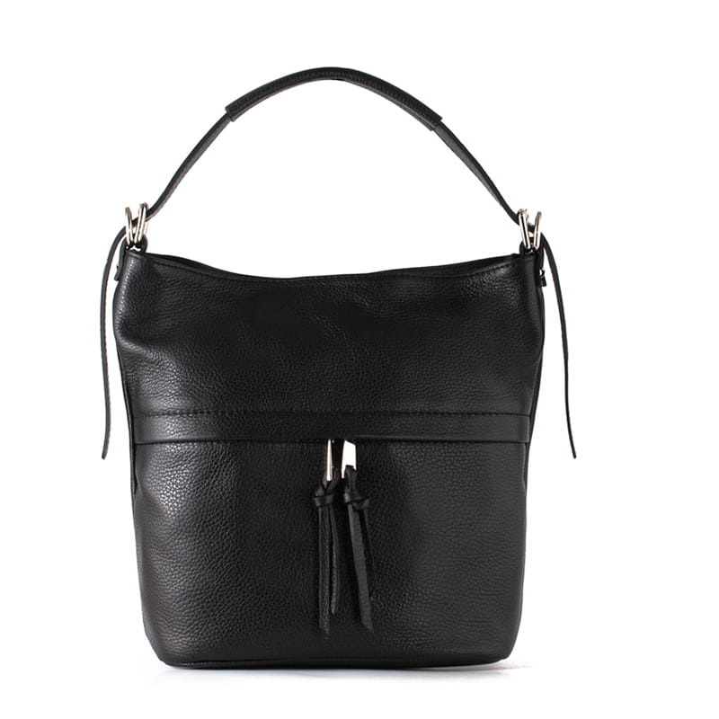 Skórzana torebka typu worek, świetnie nadająca się do noszenia na co dzień. Klasyczny fason torebki ozdobiony z przodu kieszonką z frędzlami, przeznaczony dla kobiety w każdym wieku. Staranie odszyta przez włoskich kaletników z najlepszej jakości miękkiej naturalnej skóry będzie służyła przez kilka sezonów..