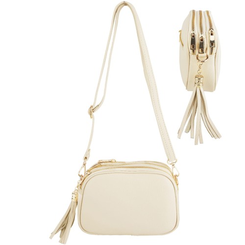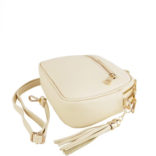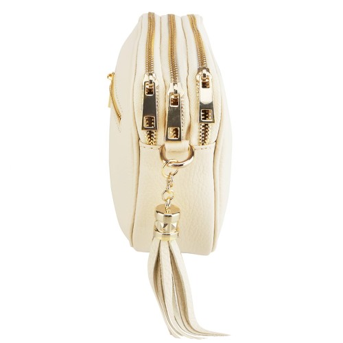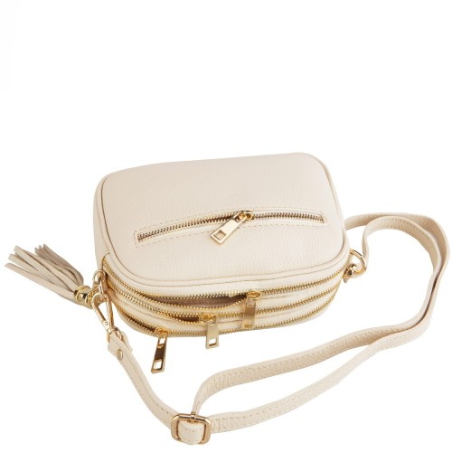 Trzykomorowa skórzana torebka listonoszka Beżowa (id1322)