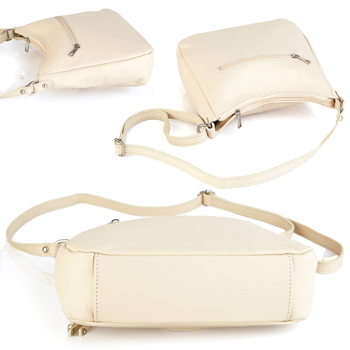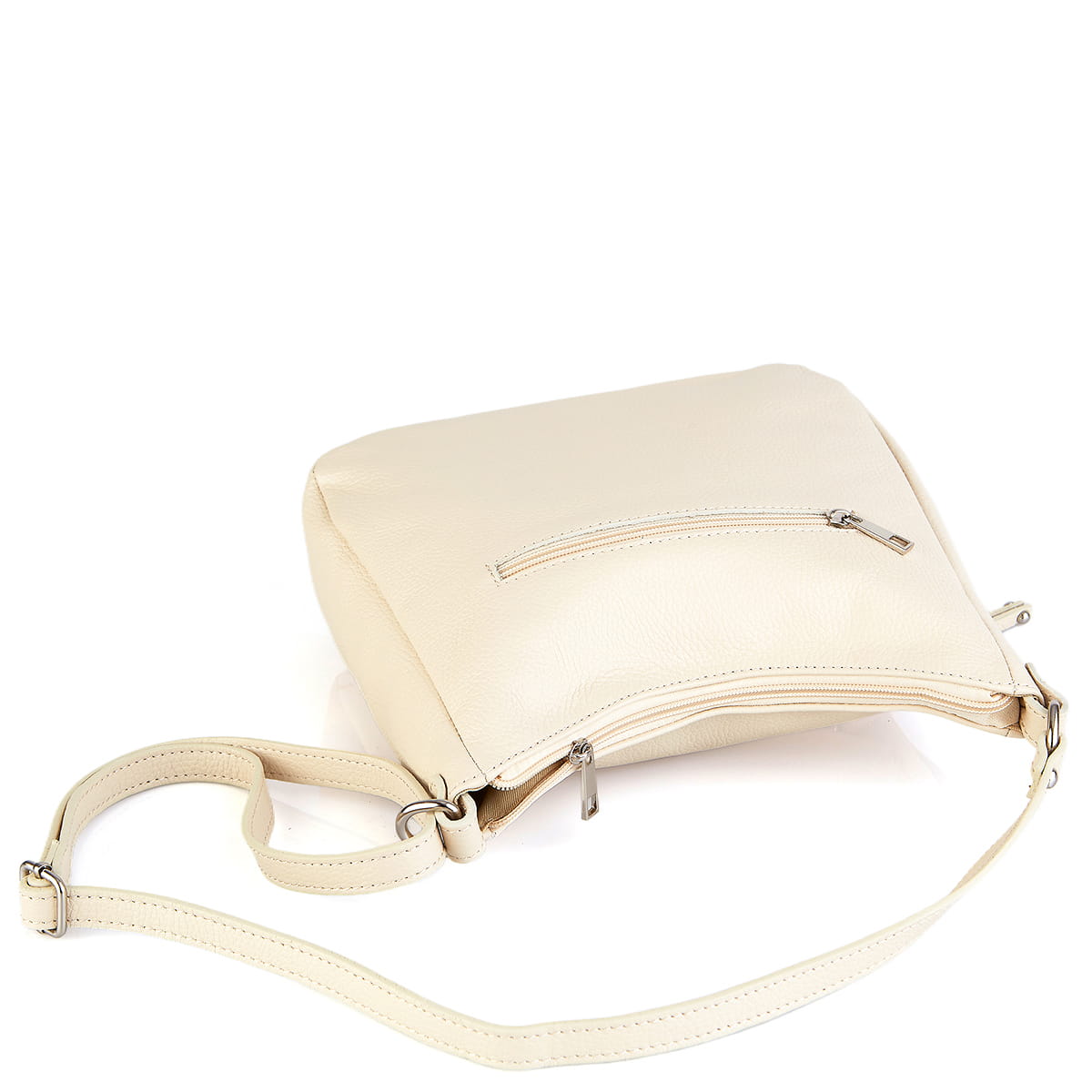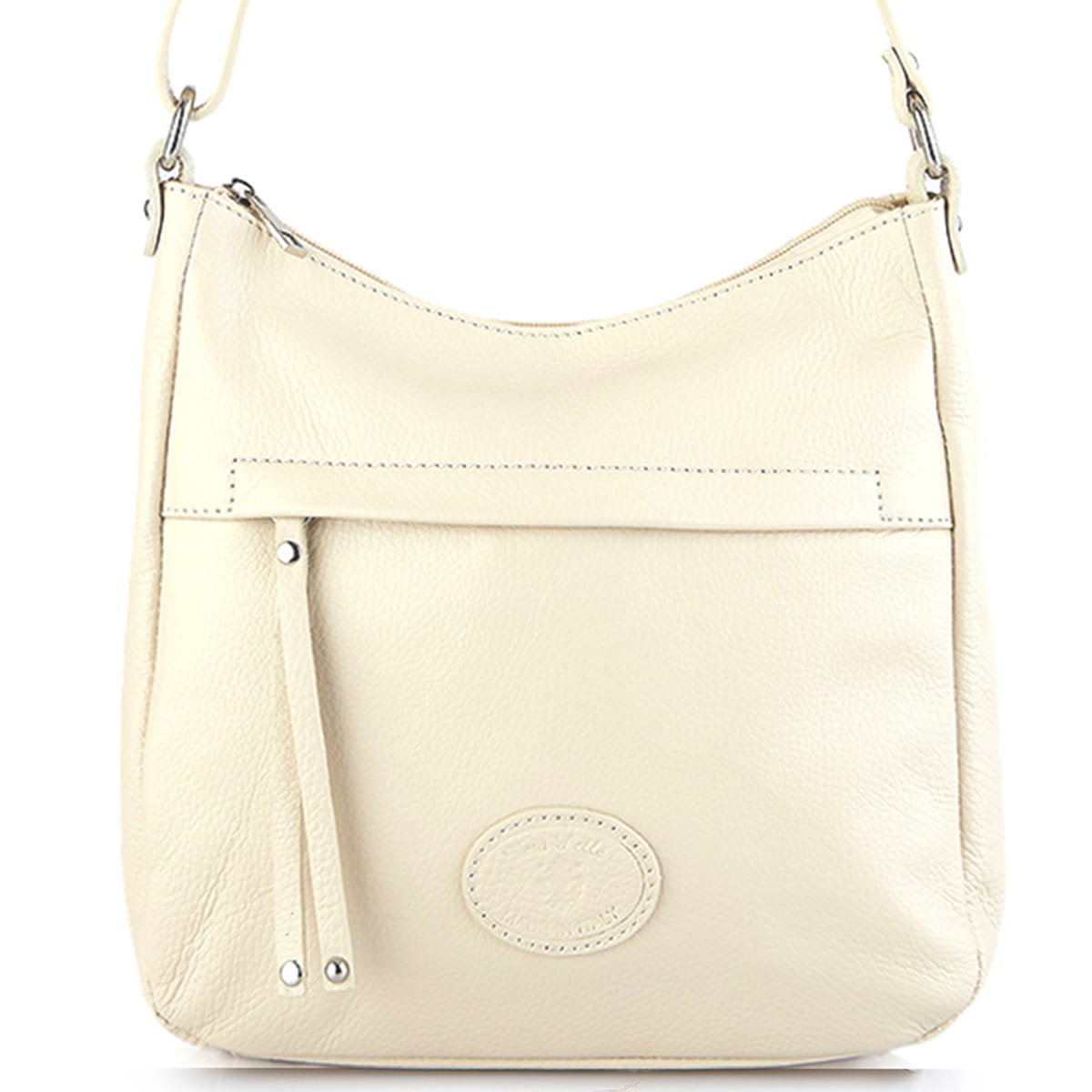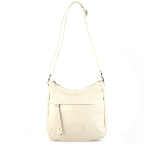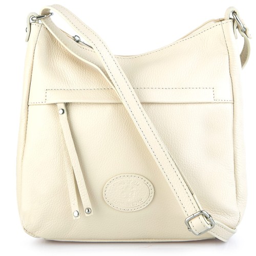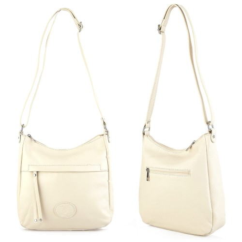 Vera Pelle Beżowa skórzana torebka listonoszka z kieszonką z przodu