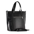 Vera Pelle - włoska czarna torebka skórzana typu Shopper Bag wykonana z najwyższej jakości skóry naturalnej, model torebki jest usztywniony dzięki czemu torebka zachowuje niezmienny fason. Torebka wykonana jest ze skóry imitującej skórę krokodyla - aligatora. Elegancka a zarazem funkcjonalna świetnie sprawdzi się na co dzień..