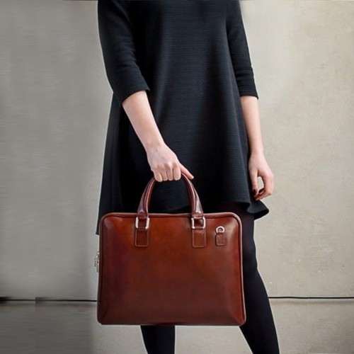 Skórzana teczka damska wykonana z najwyższej jakości gładkiej skóry naturalnej przez włoską firmę VERA PELLE.