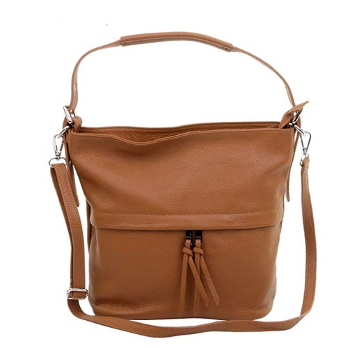 Włoska torebka typu worek, świetnie nadająca się do noszenia na co dzień.. Klasyczny fason ozdobiony z przodu kieszonką z frędzlami, przeznaczony dla kobiety w każdym wieku. Staranie odszyta przez włoskich kaletników z najlepszej jakości miękkiej naturalnej skóry będzie służyła przez kilka sezonów..