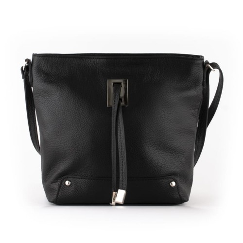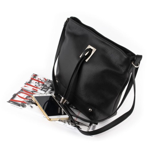 Czarna skórzana torebka-listonoszka włoskiej produkcji wykonana z najlepszej jakości skóry naturalnej. Torebka jest pojemna, praktyczna dla kobiety w każdym wieku. Starannie odszyta będzie służyła wiele sezonów...