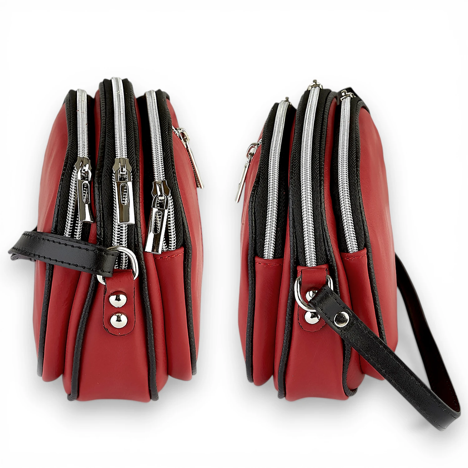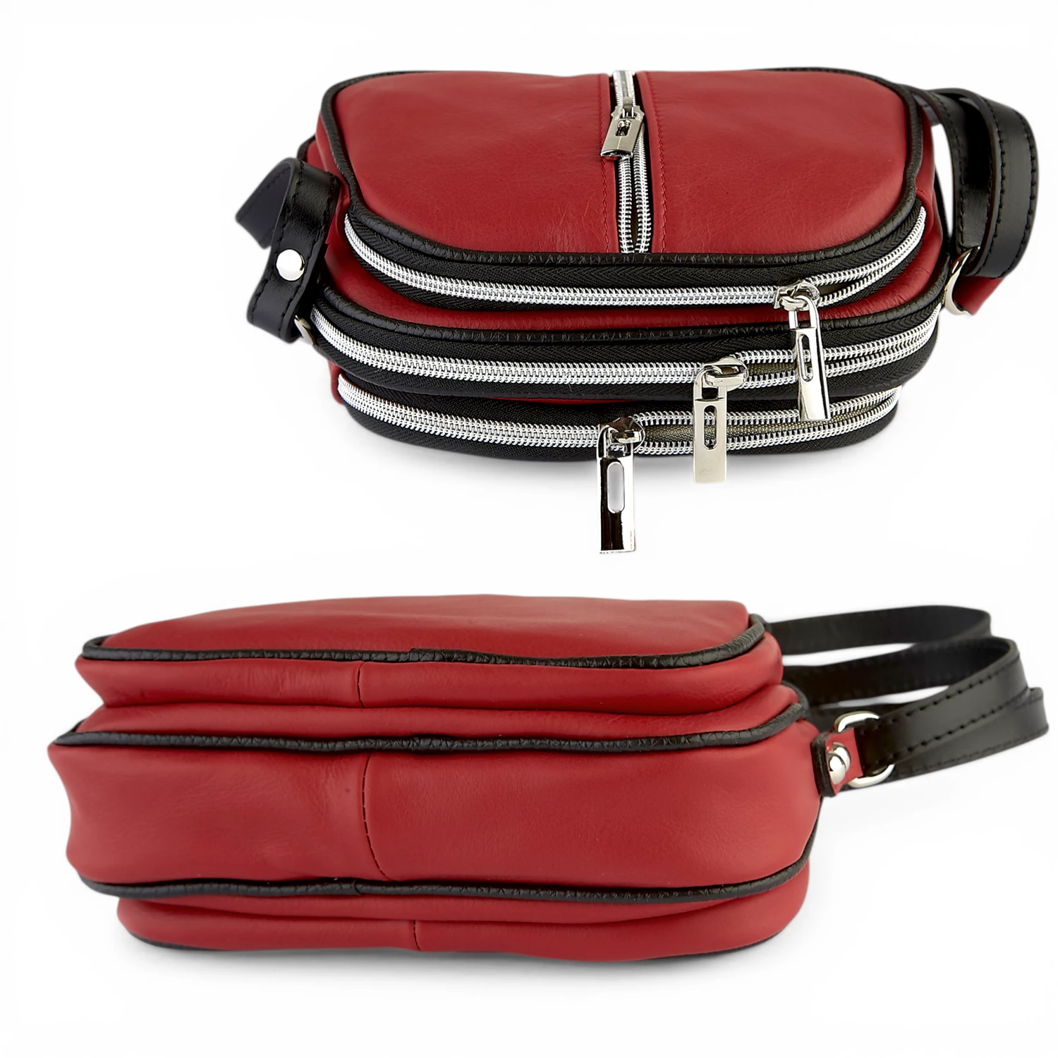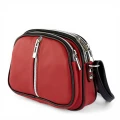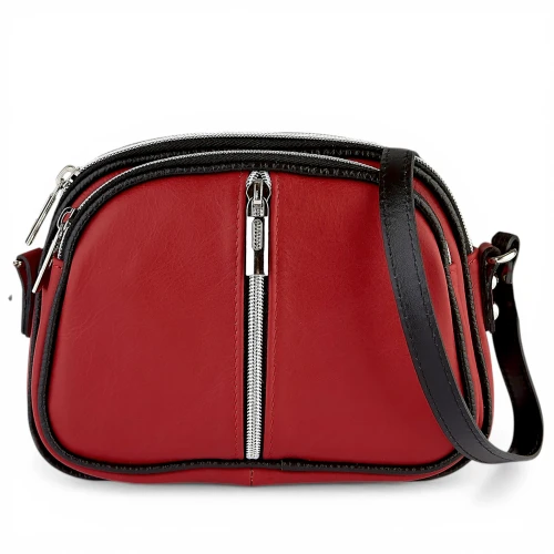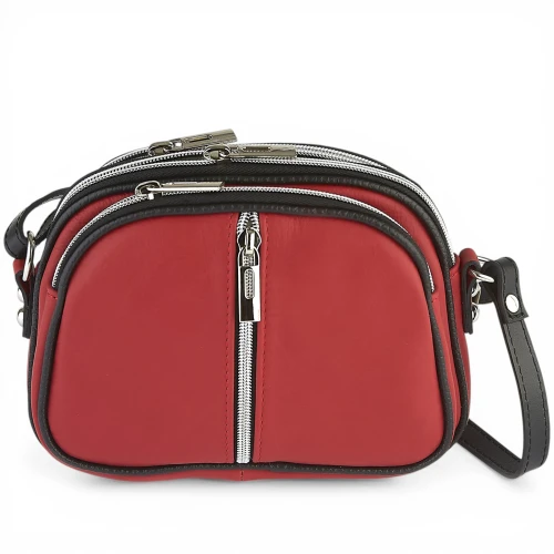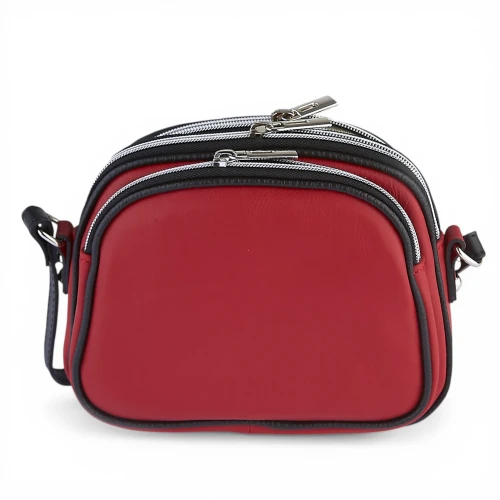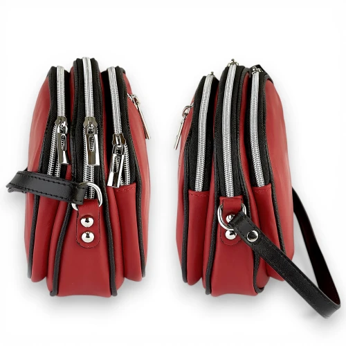 Mała Czerwona Skórzana Torebka Listonoszka Trzykomorowa